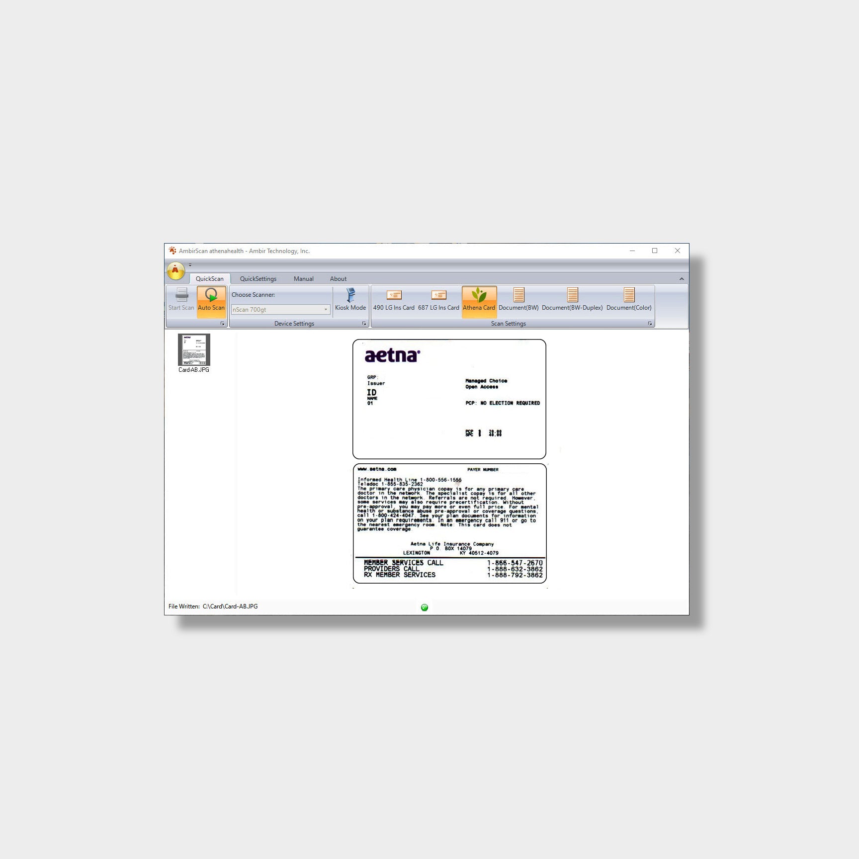 Get the most out of your Ambir sheetfed scanner with AmbirScan for athenahealth. Whether you’re capturing ID cards, insurance cards or documents, AmbirScan for athenahealth provides you with the tools you need to get the job done quickly and professionally.