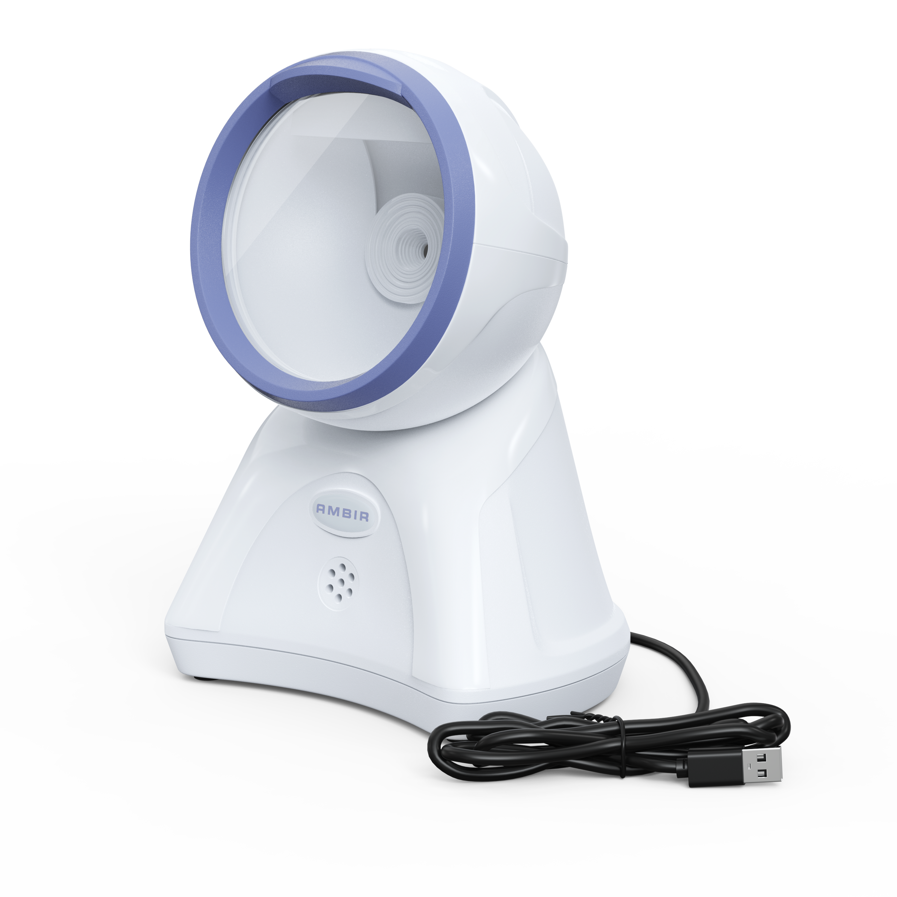 AMBIR DB100 Omni-directional Desktop USB 2D Barcode Reader - White/Blue (DB100-WH)